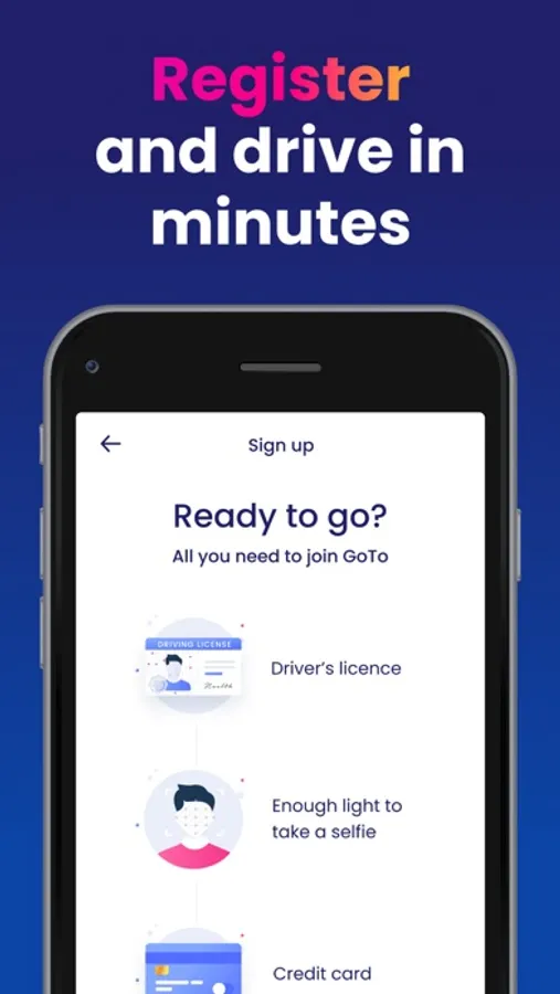 So download the GoTo car-sharing app and create an account in less than 2 minutes!