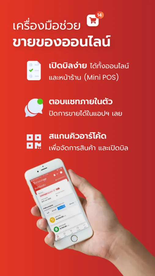 ย่อการขายของออนไลน์ของคุณมาไว้ในมือถือ! กับฟีเจอร์ที่ช่วยอำนวยความสะดวกในการขายให้คุณ สามารถเปิด/ปิดการขาย ผ่านมือถือได้อย่างง่ายๆ สะดวกต่อการติดตามรายการสั่งซื้อทุกรายได้ทุกเวลา หรือแม้แต่จะปิดการขายด้วย MINI-POS ในหน้าร้าน ก็สะดวก โหลดใช้งานได้ฟรี!!