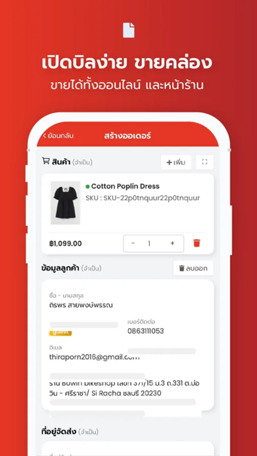สามารถสร้างสินค้าใหม่ หรือแก้ไขรายละเอียด สินค้าได้ทันที ไม่ต้องเปิด Computer