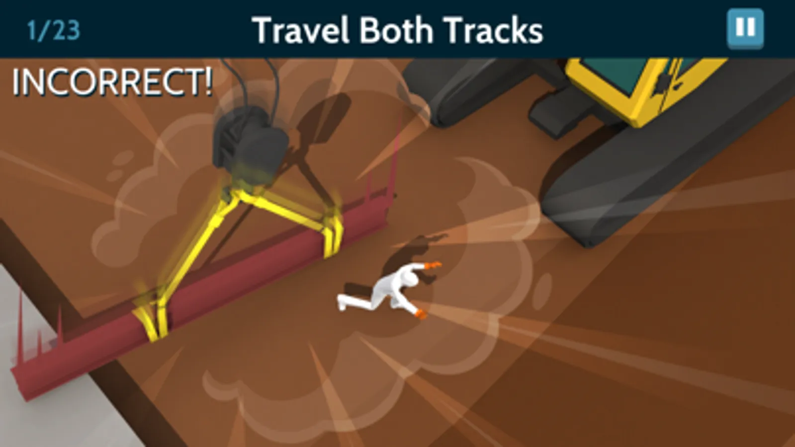 In this 23 question quiz, players must choose the appropriate hand signal animation based on the on-screen prompt. Choose correctly, and see the crane complete the task successfully. Choose incorrectly, and witness a disastrous accident. Receive feedback on the signals you missed and review them in the reference section of the application. Players who earn a perfect score on the quiz can generate a certificate of completion.
