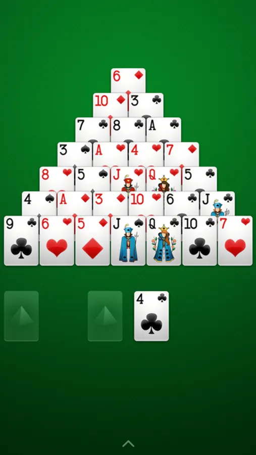 Kings have a value of 13 (and don't require pairing), Queens are 12, and Jacks are 11. Once the pyramid is cleared, you have the optional objective of pairing the remaining cards for additional points.