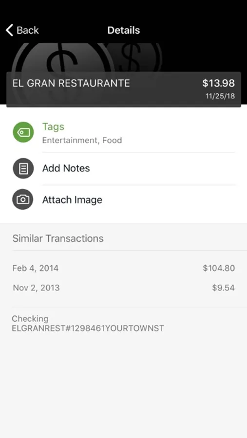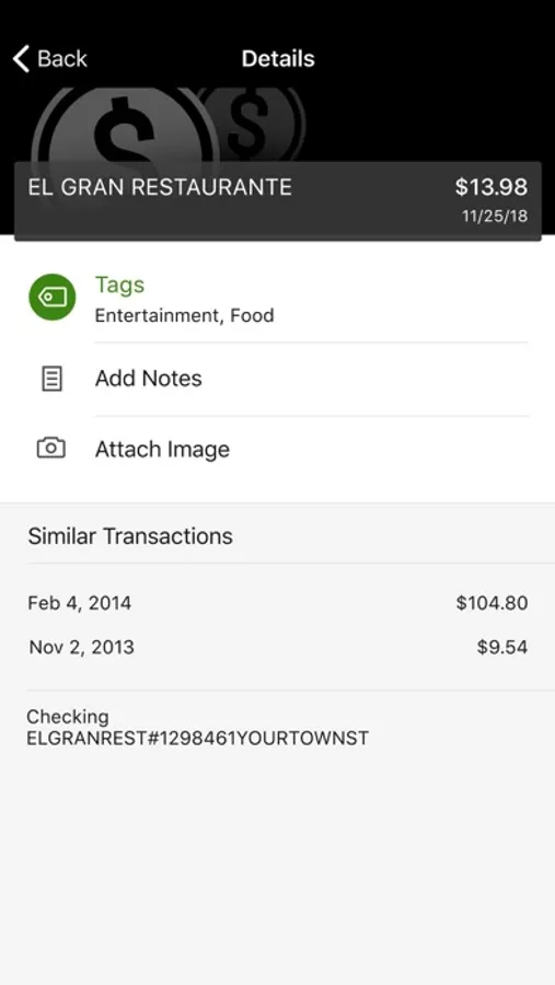 - Keep your transactions organized by allowing you to add tags, notes and photos of receipts and checks.