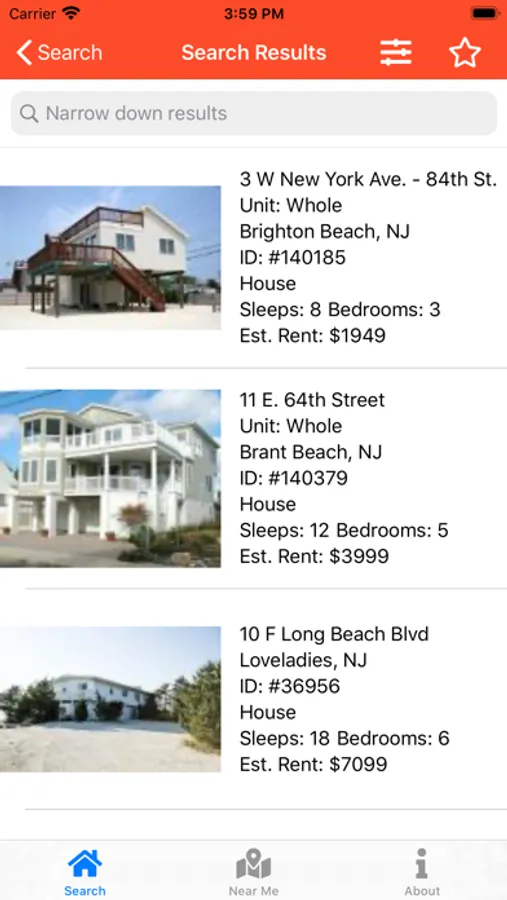 With this app you can view all aspects of vacation properties to rent in the Long Beach Island area including: