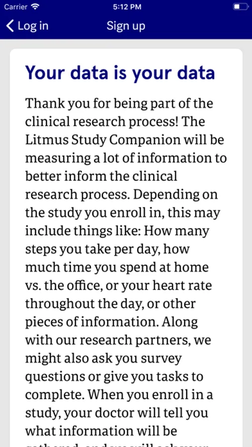Litmus Companion makes it simple for you and your doctor to track unique indicators of your health over the duration of a clinical trial. With the Litmus Companion your doctor can integrate data from wearables and home sensors seamlessly into your trial. You can even update your health status and record answers to trial-specific questions on-the-go. Staying up-to-date on tasks for your trial is easy with a real-time dashboard and push notifications.