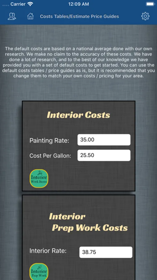 > Cost Tables with pre loaded work items that cover just about everything for Painting including Interior, Exterior, Specialty,