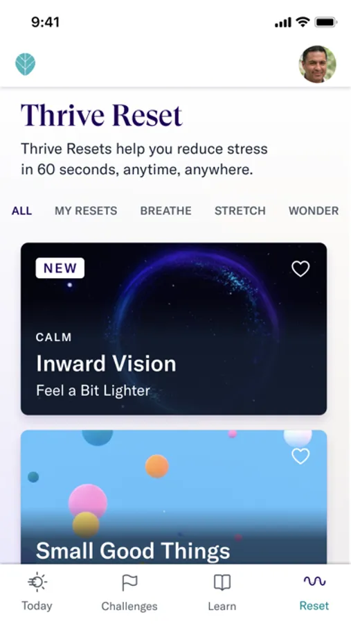 * Thrive Reset: Reduce stress in just 60 seconds using your favorite images, quotes, and music
