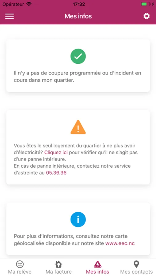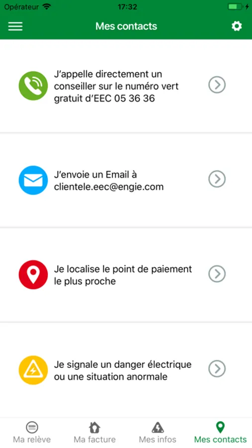 Grâce à l’appli EEC SMART, d’un seul geste vous disposez d’une information en temps réel pour suivre et régler vos factures d’électricité, relever votre compteur, être informés des incidents électriques et des travaux dans votre quartier et contacter EEC. Pour la sécurité de tous, vous pouvez également signaler un incident électrique.
