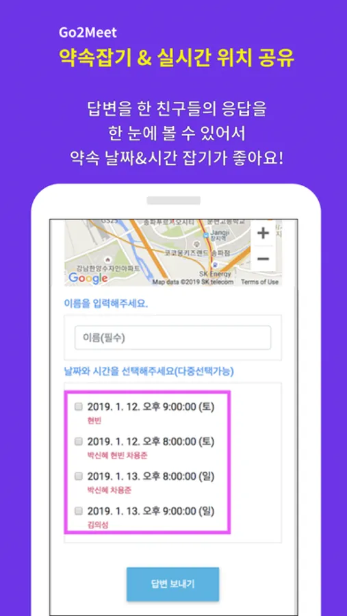 약속잡기 App은 2명 이상의 가족/친구/동료와