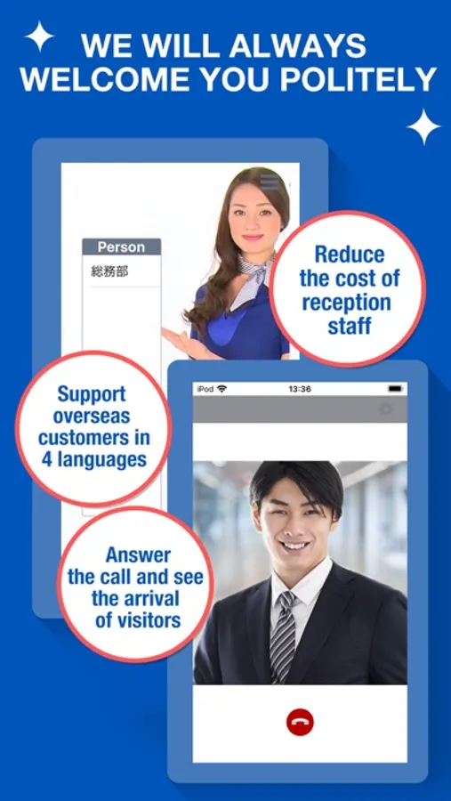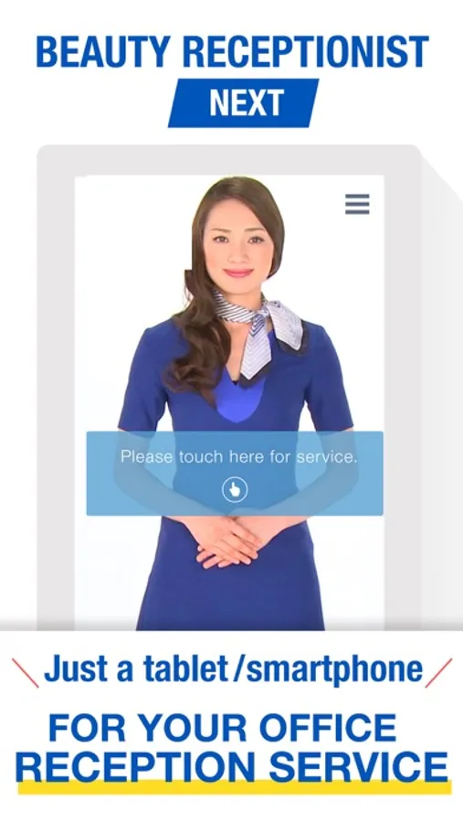 If you import a beauty receptionist, you will no longer need a receptionist. The visitor only needs to tap the iPad and then press the call button. The receptionist in the app will smile and call the person in charge.