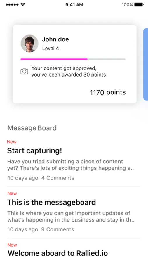 Rallied makes content creation easy, so you can get your team to create content for you and no longer stress about what to post on social. You’ll never run out of content ever again. Members of your team will gain points every time a piece of content is uploaded, and whoever has the most points gets rewarded for their efforts.
