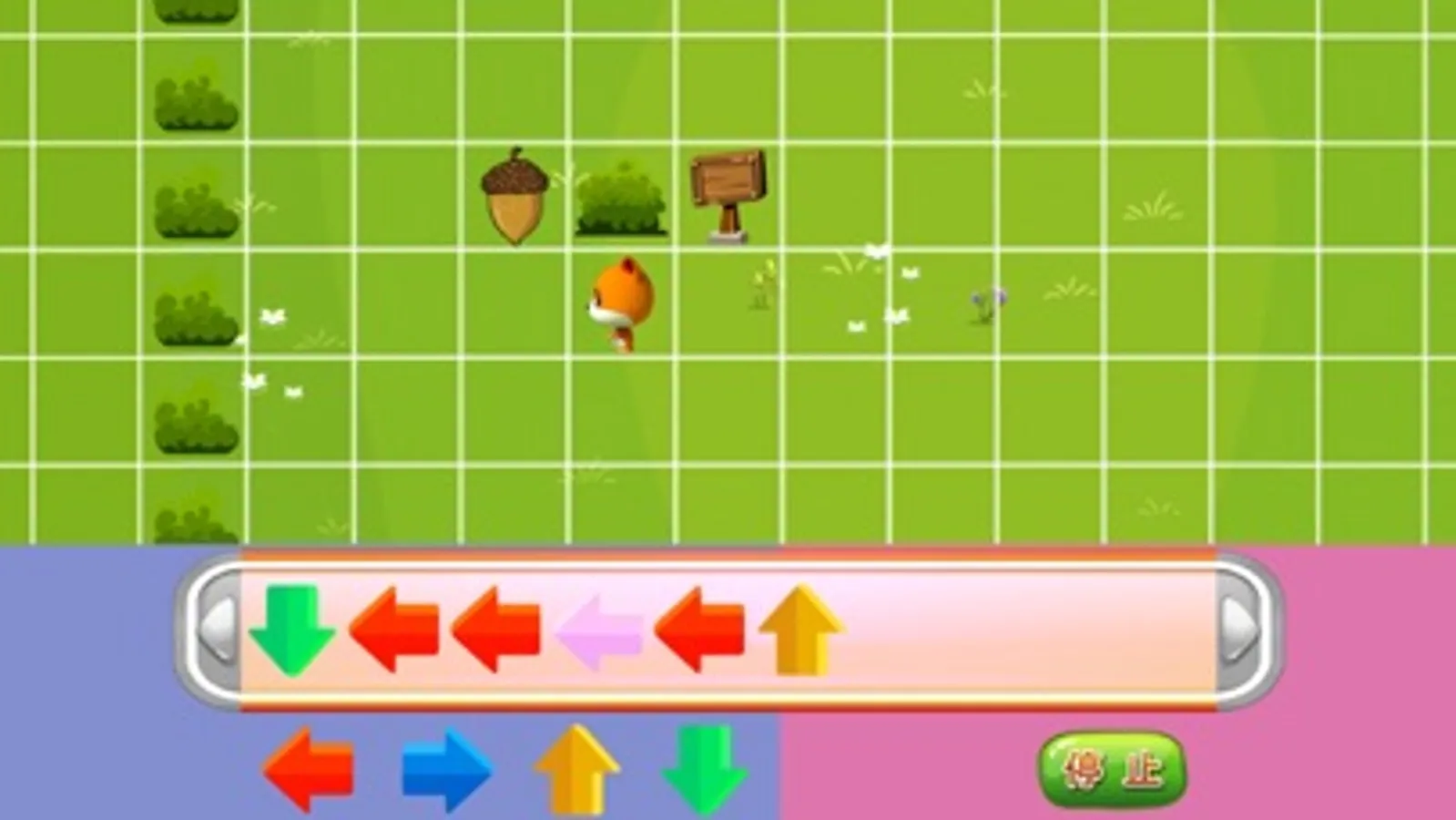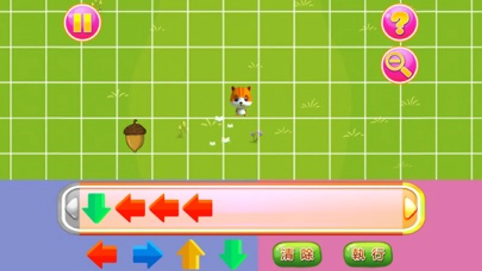 認識並能分辨上下左右符號後,動腦思考看看,運用符號設計指令來收集松果吧!