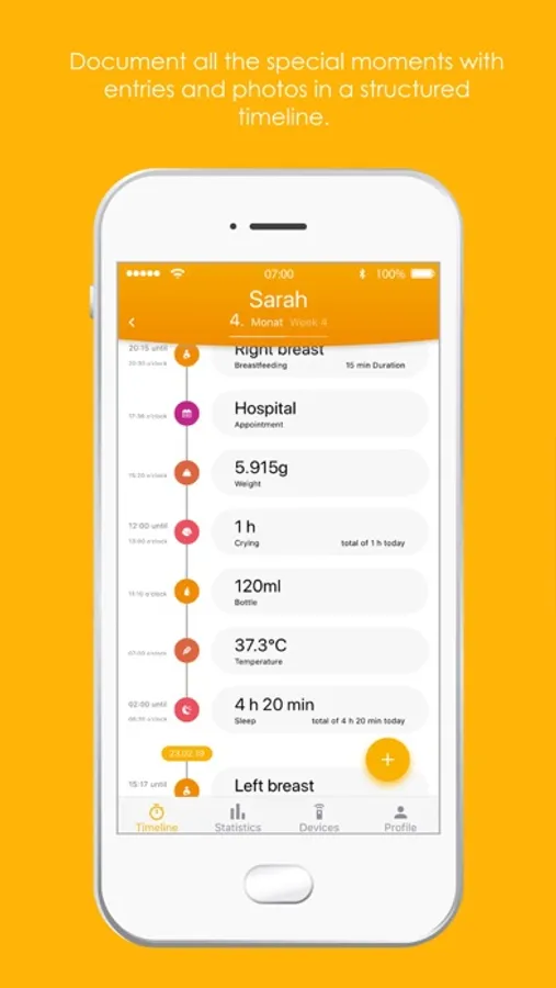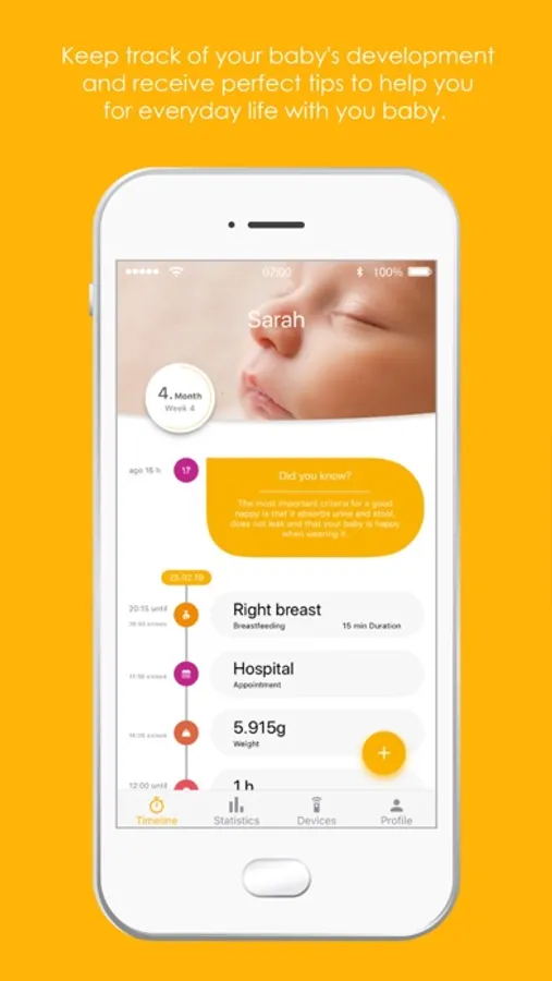 Keep track of your baby's development with the free "beurer BabyCare" app and document all the special moments in a structured timeline.