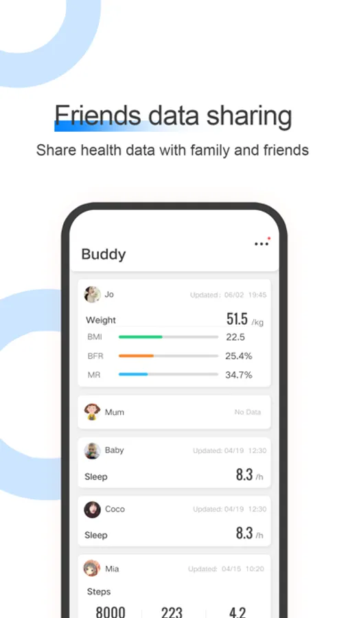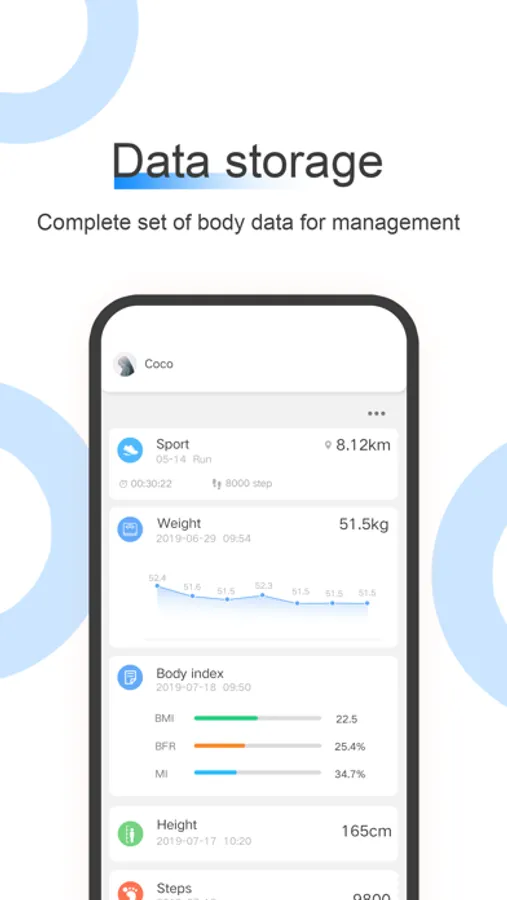 Cloud data storage - All data is associated with your account, so measurement data will not be lost even if you lose your mobile or uninstall the program;