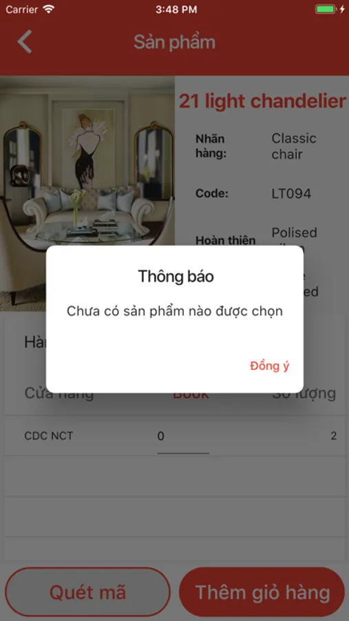 Ứng dụng này có chức năng đặt hàng bằng cách tìm kiếm sản phẩm để thêm hàng vào giỏ hàng, tính tiền và thanh toán cho hàng đã đặt. Ngoài ra còn có chức năng quét mã code để tìm kiếm thông tin cho sản phẩm cần tìm.