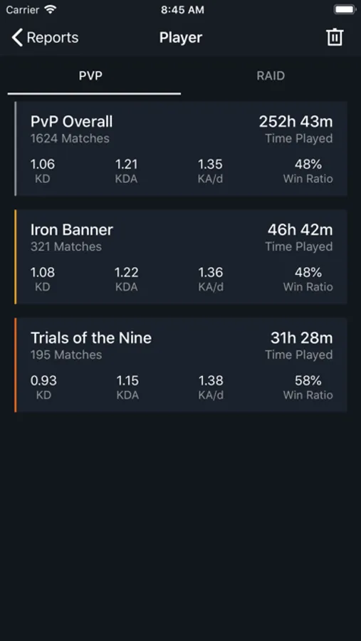 Check and track PvP/Raid stats for Destiny 2 guardians.