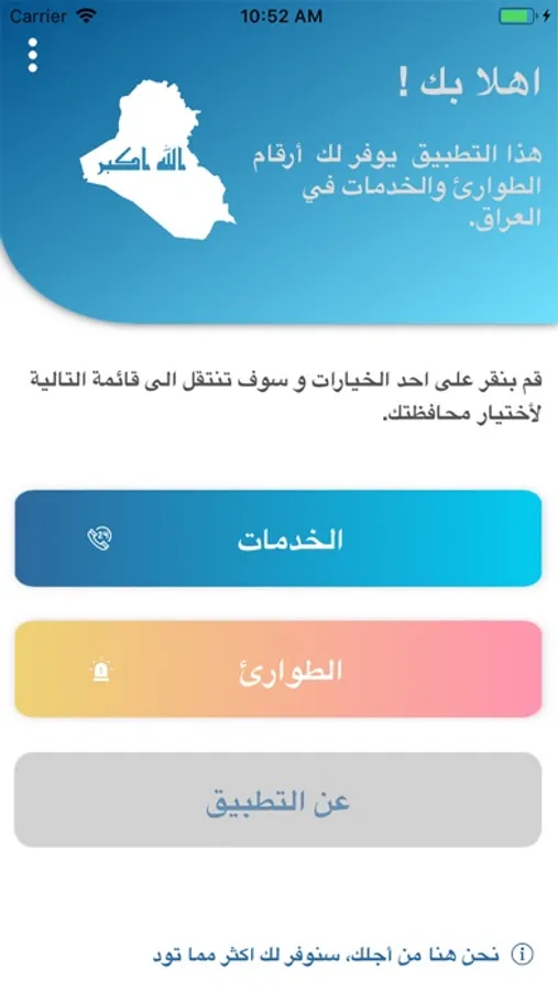 هذا التطبيق يوفر لك ارقام الطوارئ والخدمات في العراق.