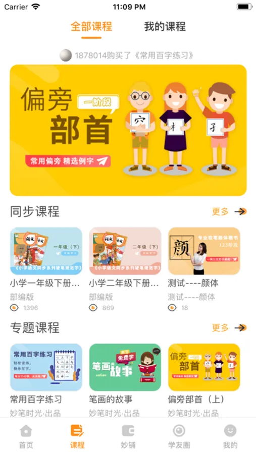 小学生语文同步视频课程与专题书法视频课程。