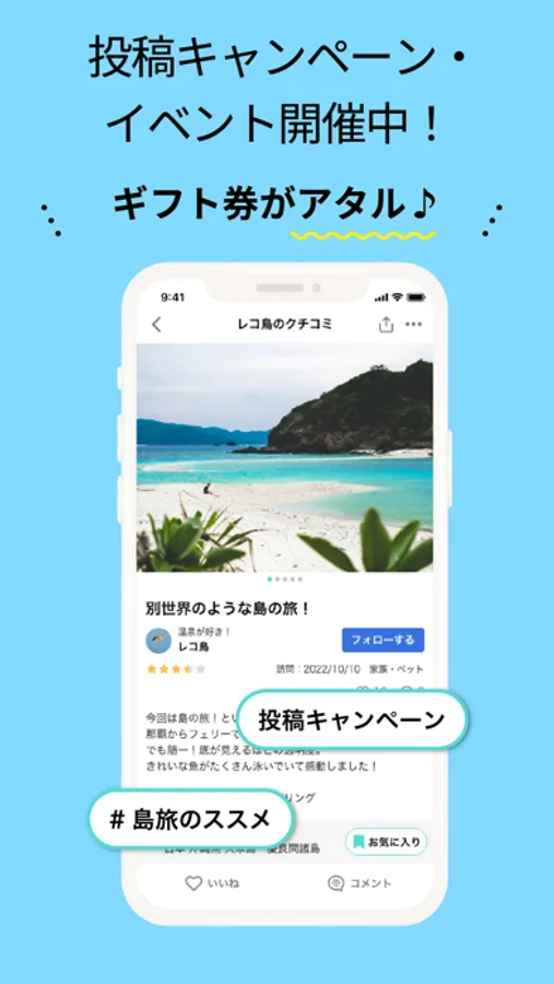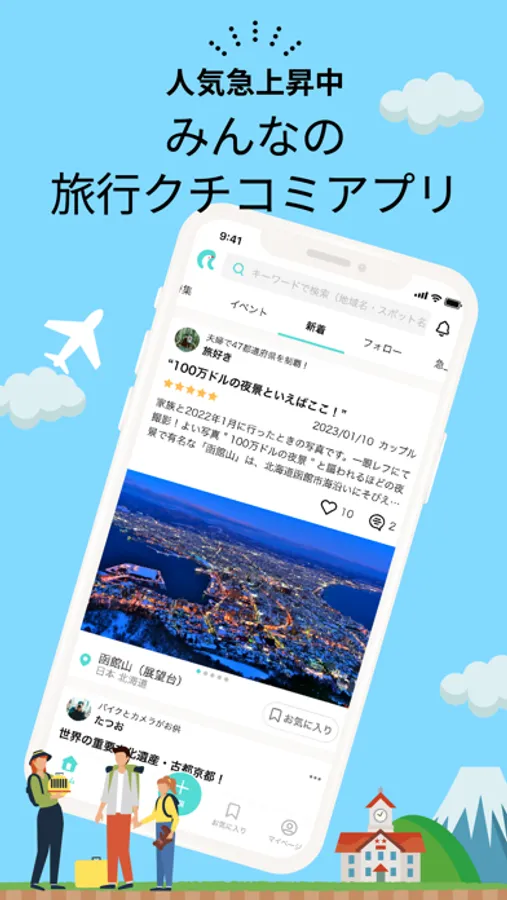 ・クチコミを投稿して、おすすめの旅行先やご当地グルメ、ホテルの情報を発信