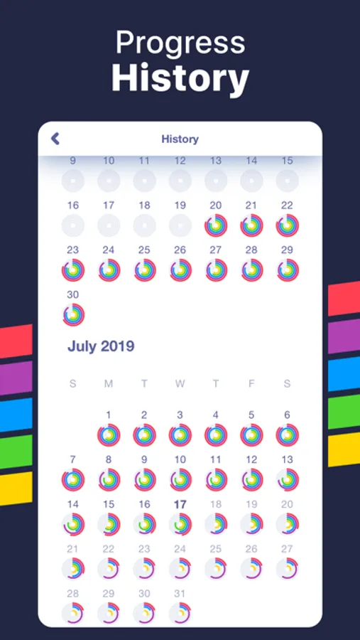 The History part, designed as a calendar, can help you get a quick glimpse into all your goals and how far you have gone into meeting them. It gives you a compelling visual insight into all your set goals and how far you have gone so you can easily track them.