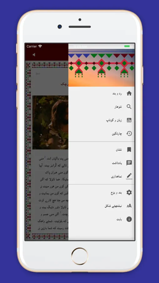گزیدهای از متن و صدایِ کتابِ مقدس به زبانِ بلوچی شامل چهار انجیل (متی مرقس، لوقا و یوهنّا) که بیانگرِزندگی، معجزات، مرگ و رستاخیزِ عیسی مسیح است و اعمال رسولان که تأسیس و رشدِ کلیسای نخستین را بیان میکند. افزون بر آن بیان میکند که چطور پیغام پرمحبت مسیح از اورشلیم به سوی بیشتر سرزمینهای امپراتوری روم رسید. در همین زمان بود که به پیروانِ او عنوانِ مسیحیّت داده شد. این اپلیکیشن، همچنن دارای فیلمهایی دربارهی زندگی انبیاء و عیسی مسیح به زبانِ بلوچی است