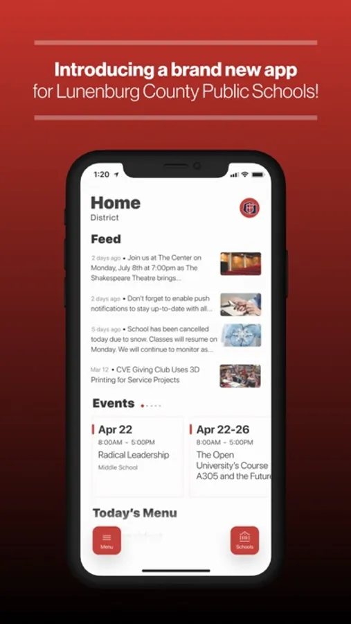 The official app for Lunenburg County Schools allows users direct access to the most recent news, announcements and event calendars. Customize the app to display information relevant to a specific campus and to receive important notifications from the district. Users may also access the directory of district faculty and staff, view dining menus, find the location of district events, contact campuses and departments, follow athletic scores and updates, and much more.