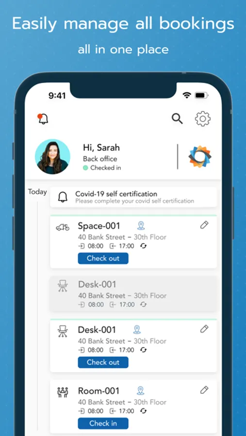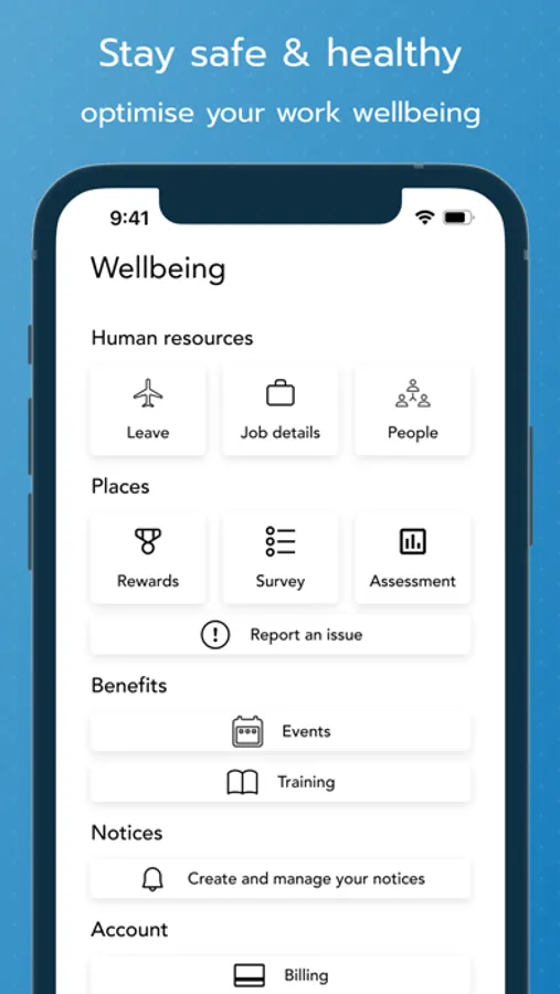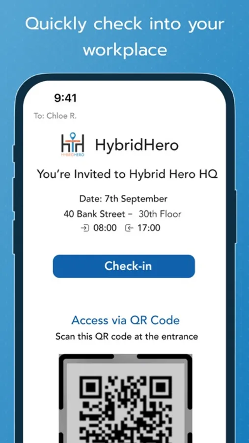 STAY SAFE & HEALTHY. Make your return to the office safe and secure with our daily health screening module. Upon arrival, reduce the spread of germs with a contactless QR code sign-in using the HybridHero app. Have peace of mind with capacity limits, remote working, and cleaner reporting. Keep healthy through our Wellbeing module covering fire wardens, benefits, exercise tips and healthy eating.