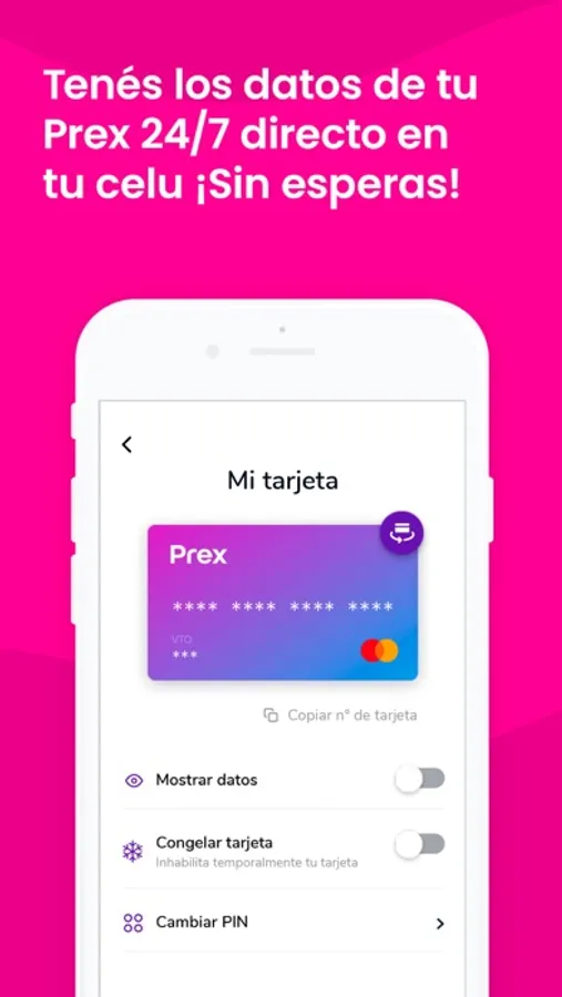 Con Prex tenés el control total de tu cuenta al alcance de tu mano. Hacemos tu vida más fácil, más sencilla. Al descargarte nuestra App completás el formulario en menos de 5 minutos para solicitar tu tarjeta Prex prepaga internacional MasterCard ¡y listo!
