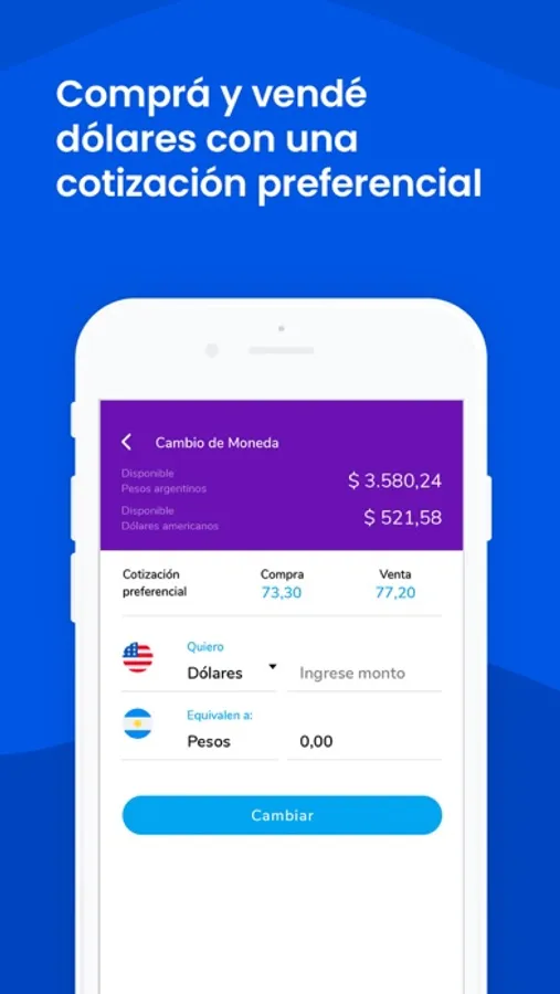 * Cambio de moneda en tiempo real con una cotización preferencial.