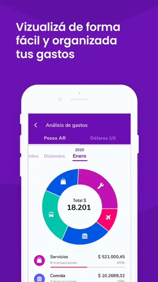 * Visualiza tu análisis y control de gastos en tiempo real de tus consumos.