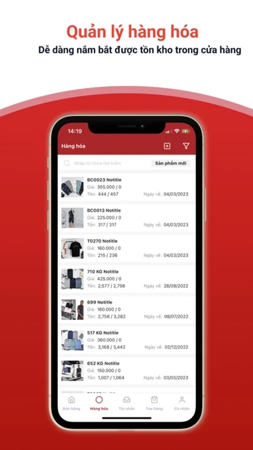 - Chức năng thông báo phân loại hàng hoá ( Bán chạy, bán chậm, lẻ size, hàng âm ...) đề xuất gọi lại, dứt mẫu, giảm giá... tiện ích, cập nhật hàng ngày.