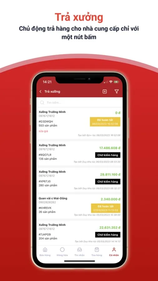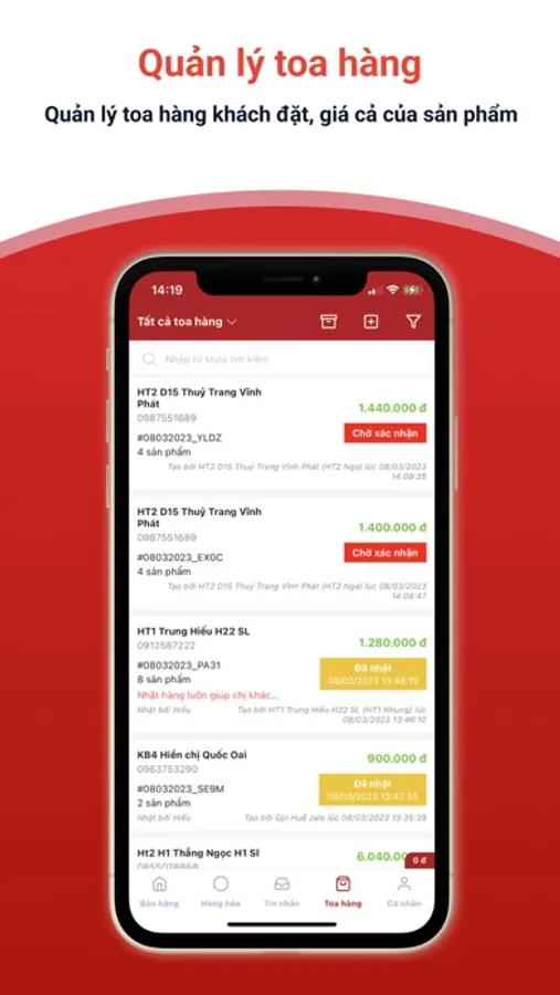 - Thao tác mở mã, toa hàng đơn giản, tiện dụng, toàn bộ thao tác trực tiếp từ điện thoại tới máy in toa.