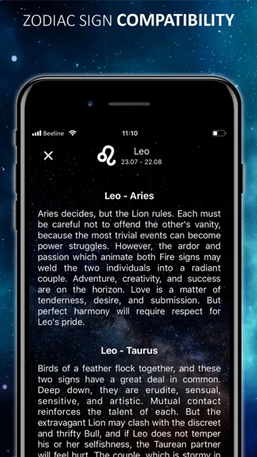 Horoscopes for every day will help predict strokes of misfortune and prevent opportunities from slipping through your fingers. We have the most truthful predictions, and that is precisely why people trust us. Your personal forecast at the right time can be configured in the settings. Set the application’s parameters to suit you personally.