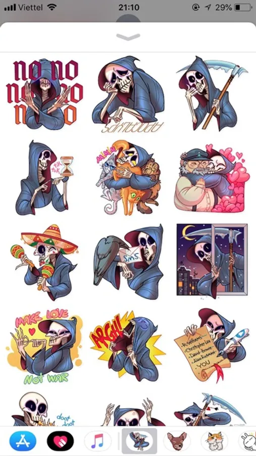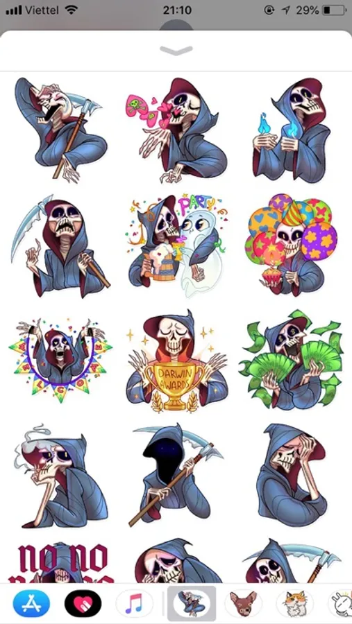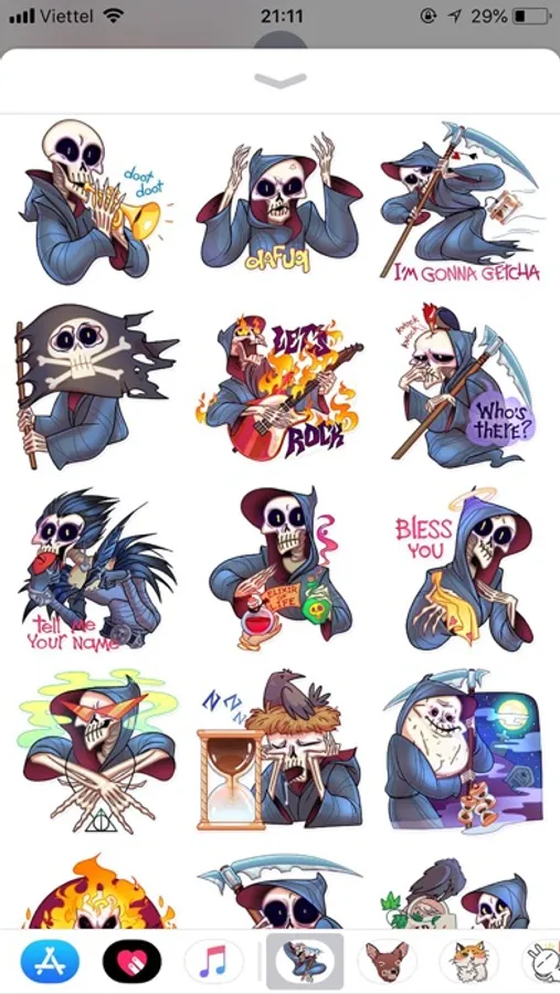 SET FULL DEATH CUTE EMOJI PUN FUNNY STICKERS EMOTION PACK