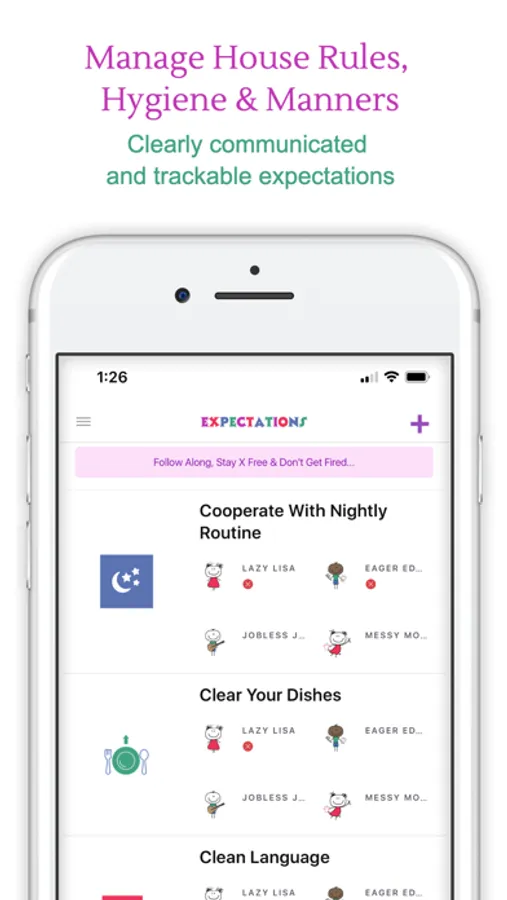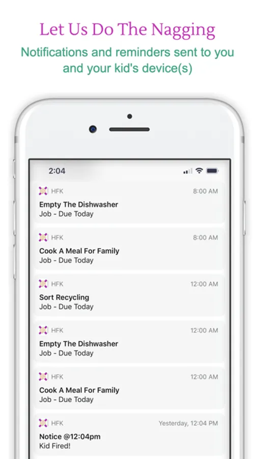 - NO MORE NAGGING, YELLING or TALKING BACK - let the app work its magic, with in-app reminders and messages.