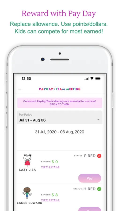 - EARN REWARD - kids receive a payday, can be dollars or other types of rewards from you.