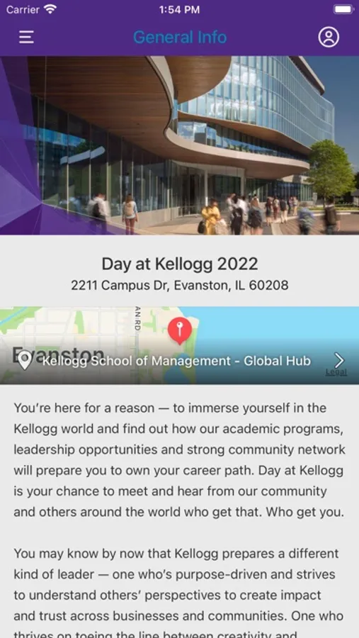 The Day At Kellogg (DAK) app provides newly admitted students information on the Kellogg School of Management's admitted student weekend.