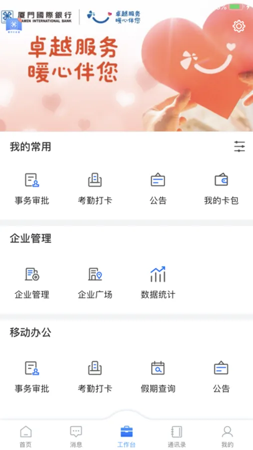 国际银行,扬帆起航!厦门国际银行专为企业客户推出便捷的移动办公及金融服务应用-国行E企盈,让您尊享贴身的移动金融服务,乐享“掌”控一切自由人生。
