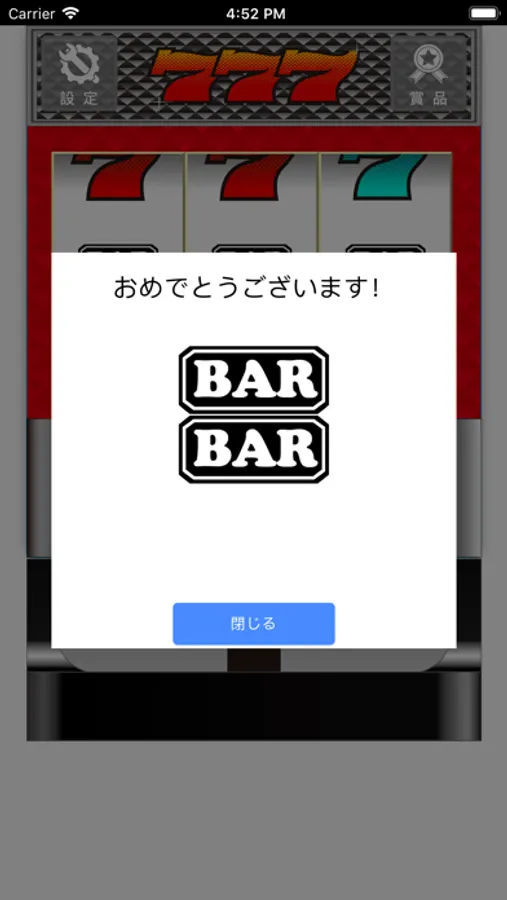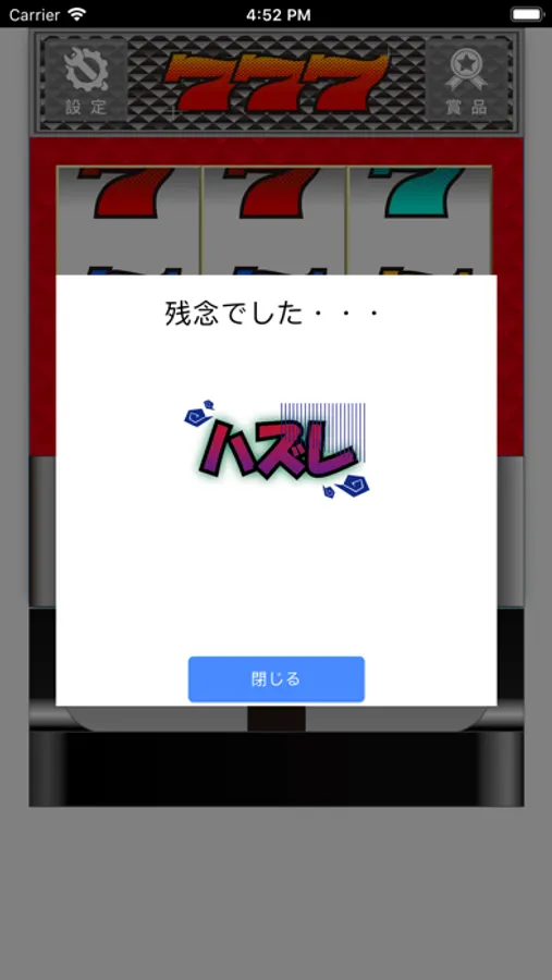 - 3リールのスロットゲームによる、抽選を行うことができます。
