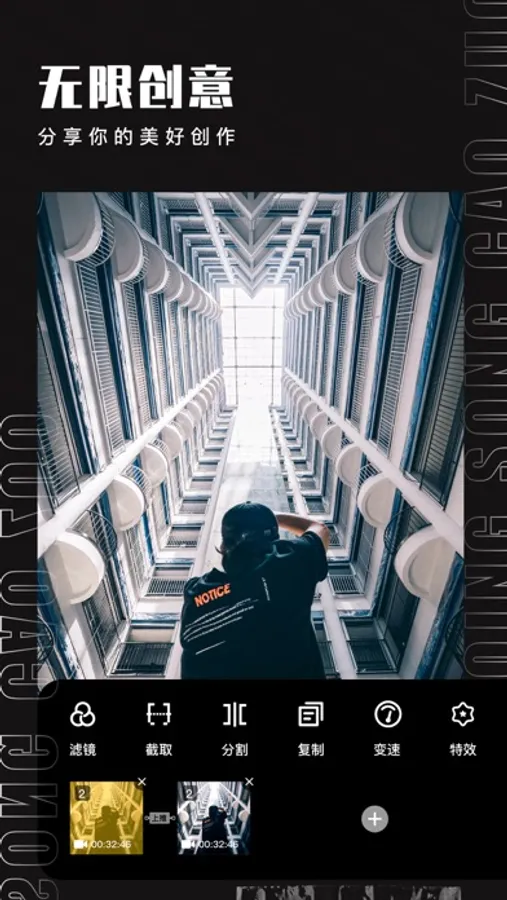 动画贴纸、胶片滤镜、视频美颜、视频制作、视频配乐……支持高清视频剪辑导出。