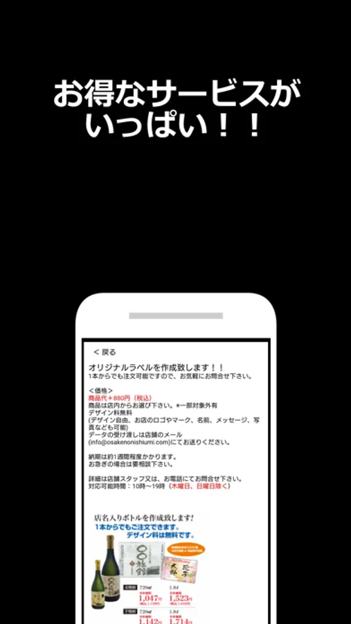 さらに、オリジナルラベルで店名入りボトルが作成出来ます。販促、記念品、コンペやお祝いなどプレゼント用にいかがでしょうか?