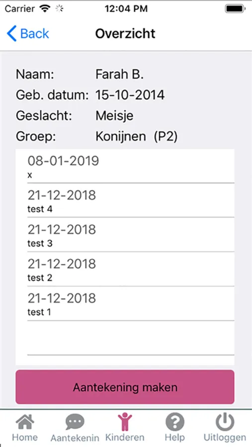 Observaties gedurende de dag noteer je eenvoudig en snel in deze app.