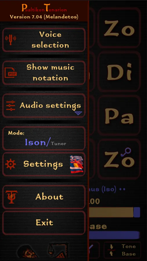 "Psaltikon Tonarion" is a program that can be used as a tuner and/or as an isocrate.