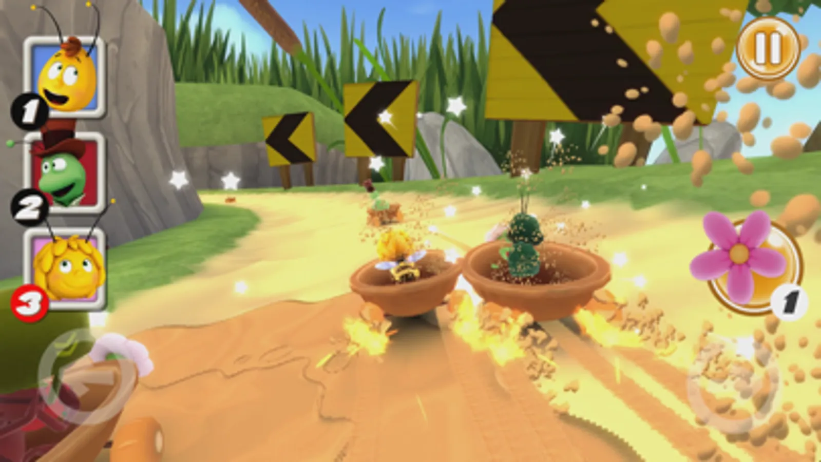 Entertain your kids with this lighthearted Maya the Bee kids race game! Perfect for preschool 3-5 year old's, there’s no pressure as the cast of Maya the Bee drive through tracks set amidst beautiful 3D nature scenes. Your child can enjoy hours of entertainment as they race for first place, play around with powerups, or just enjoy the cartoon scenery. Let the Nutty Race begin!