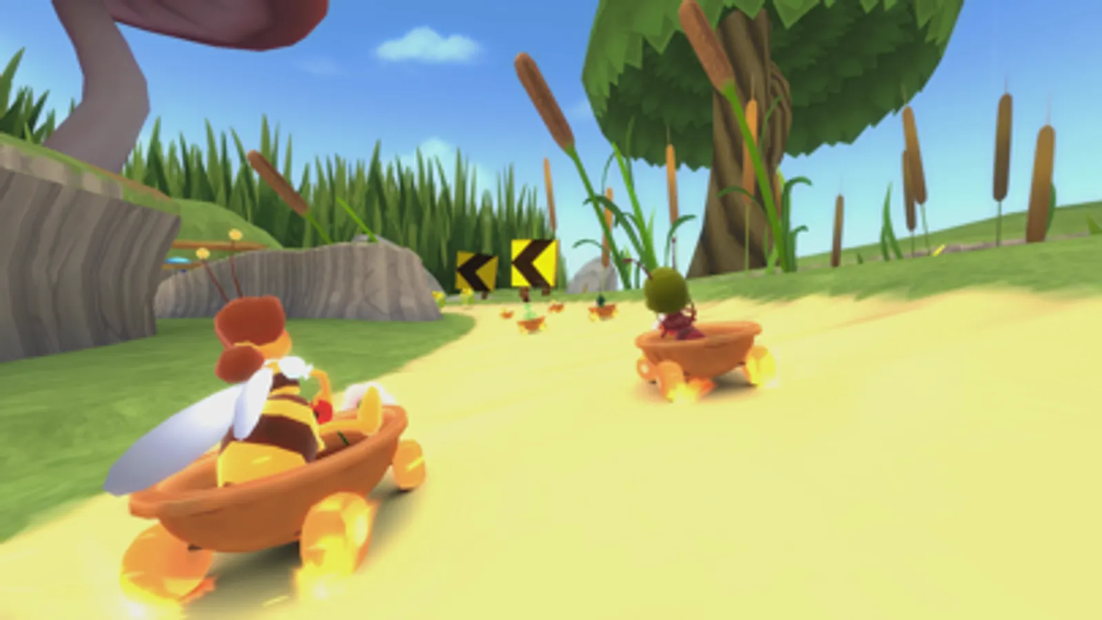 * Fun powerups: Water balloons, speed boosts, and dropping sticky honey - there are many fun things for a young racer to do.