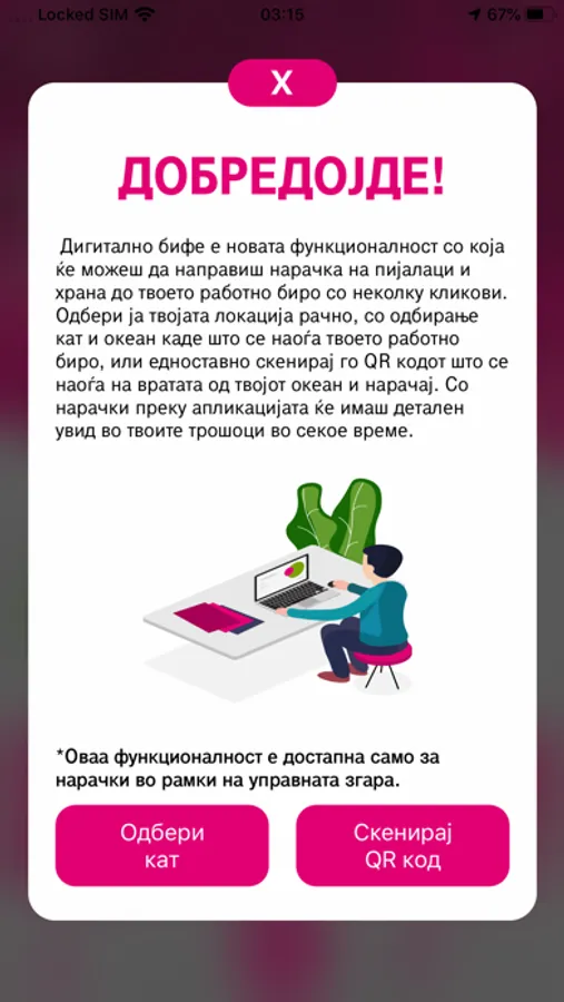 - Логирање во апликацијата е возможно преку телефонски број и пин код кој го издава МКТ.