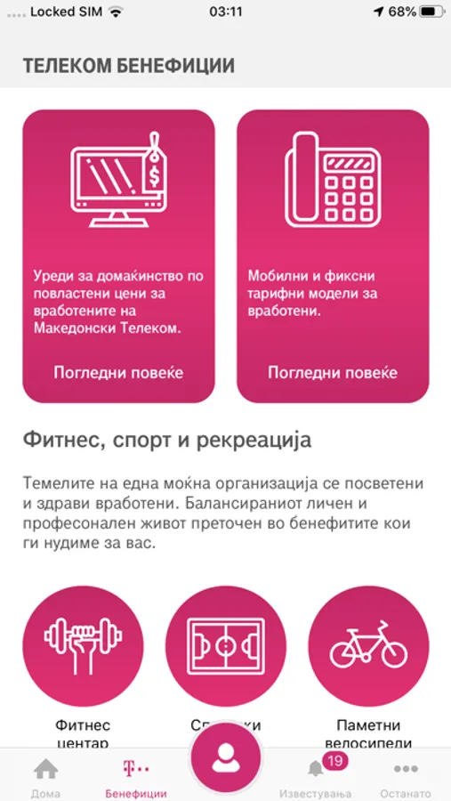 - Панелот за вработени ги содржи сите информации за бенефитите кои ce добиваат работејќи во Македонски Телеком. Искусете ги попустите, бенефитите, компаниската ID картичка, интерните и огласите од целата Deutsche Telekom групација. Добивајте известувања за новостите и потсетници од вашата агенда.