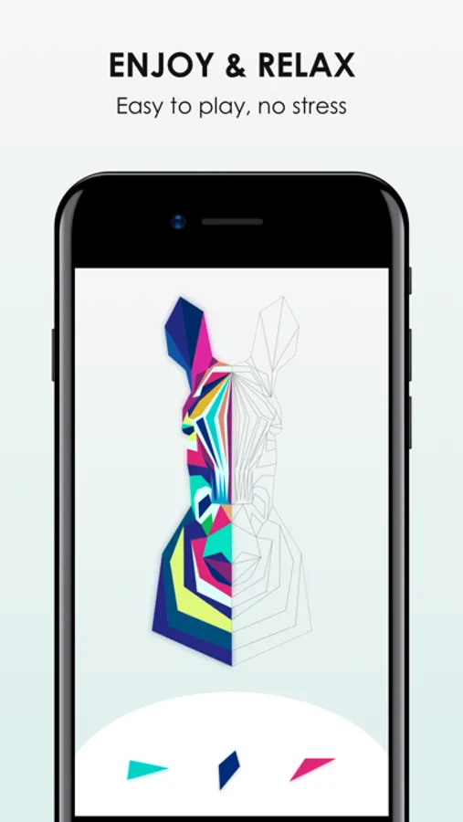 Relax & Enjoy your time with Pop Art Puzzle. Create amazing drawings with colorful and original shapes. Arrange abstract colored polygons to build masterpieces!