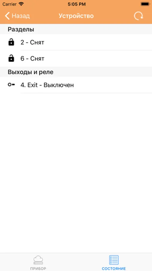 - Пуш-уведомления тревог, взятий/снятий, неисправностей и других сообщений от прибора.