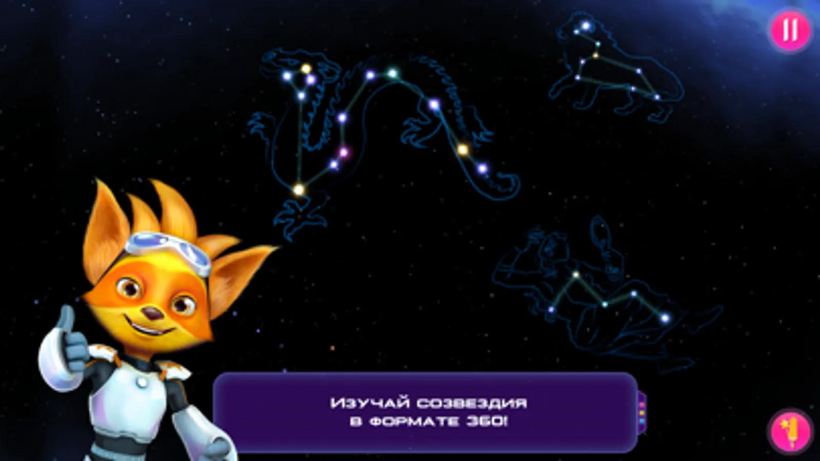 An entire galaxy comes alive right in front of you, while Kosmolis tells you many interesting facts about space and space objects. It’s fun and interesting! You could even use your camera to make a photo or video with Kosmolis and share it with your friends.