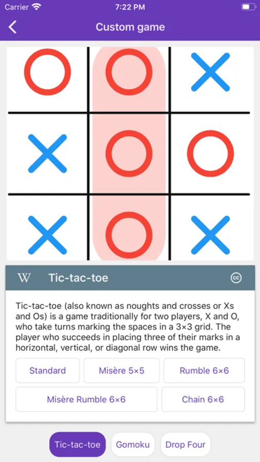 • Lots of variations in thousands of combinations, including misère, pie rule and disallowed overlines.